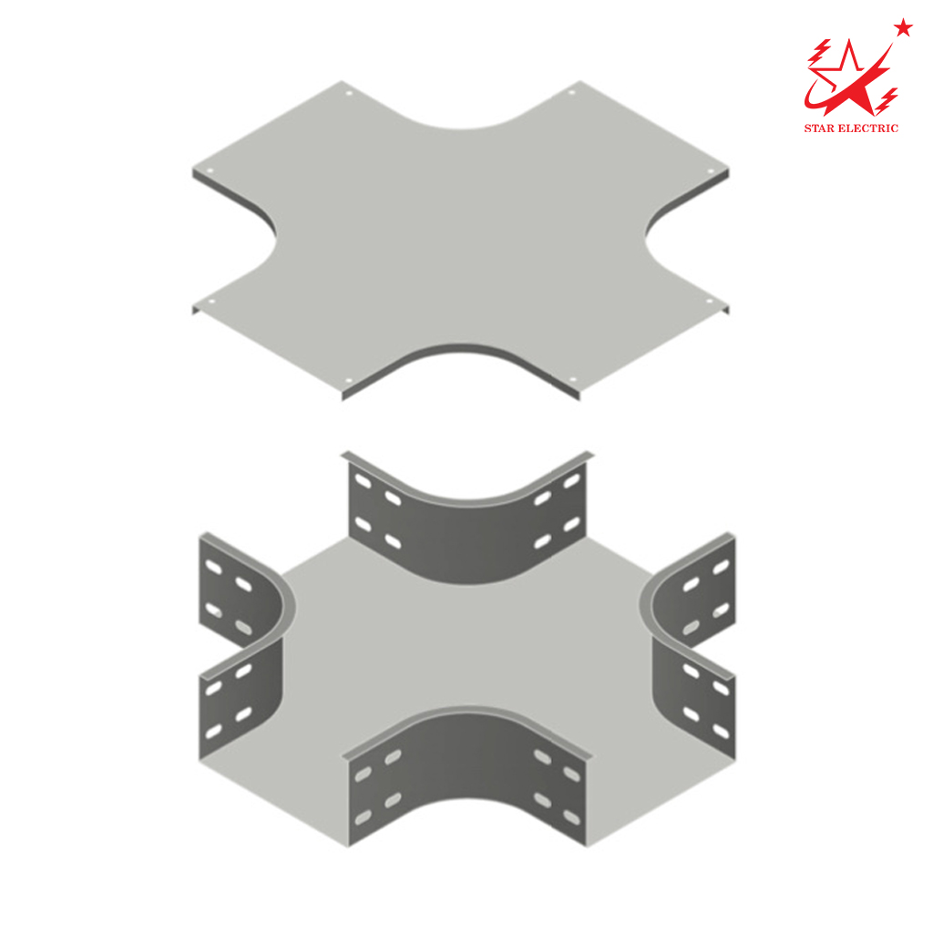 Phụ kiện chữ thập được dùng để giao nhau giữa bốn hướng máng cáp. Đây là phụ kiện quan trọng trong các khu công nghiệp, nhà máy có mạng lưới điện phức tạp.