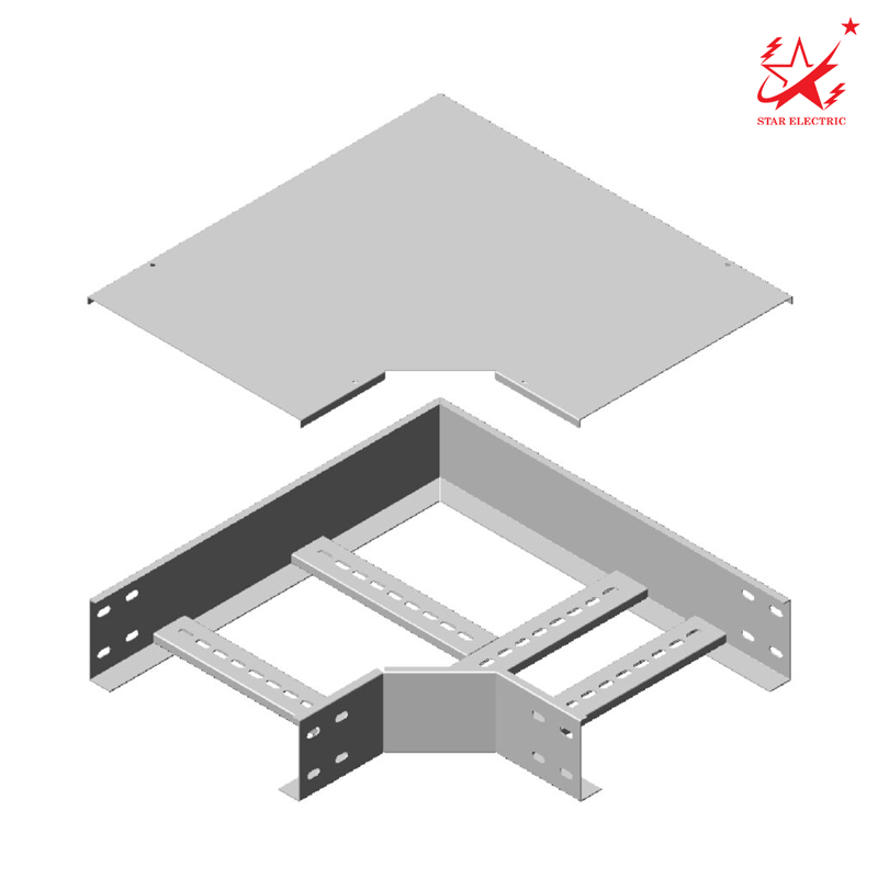 Phụ kiện Tê dùng để chia hướng hệ thống máng cáp thành ba nhánh, thường được sử dụng trong các khu vực trung tâm để phân phối dây dẫn đi nhiều hướng khác nhau.